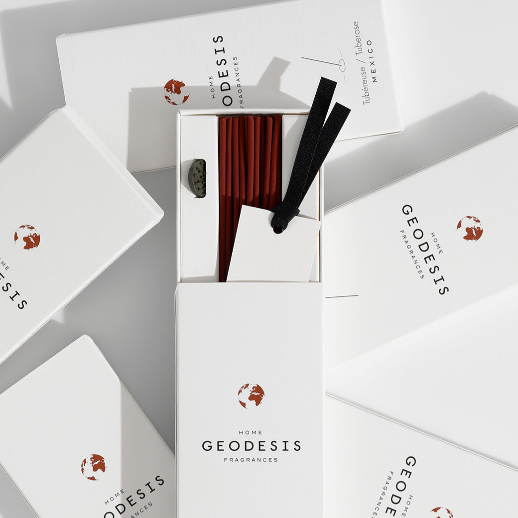 1996年、フランス ブルターニュ地方ヴァンヌで誕生した「GEODESIS(ジェオデジス)」。 創設者であるフレグランスクリエーター、ノルベルトとエミリ夫妻が世界中を旅する中で、その土地で出会った植物や素材を香りで再現したメゾンフレグランスブランドです。